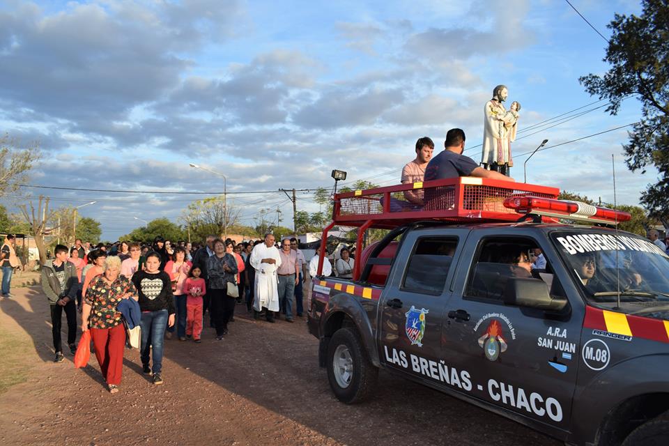 San Cayetano convocó a una 3 mil personas en su fiesta patronal. La procesión con su imagen, portada por el móvil 8 de Bomberos Voluntarios de Las Breñas, recorrió las calles del barrio y, a su término, el párroco Osvaldo Santillán presidió la Santa Misa.