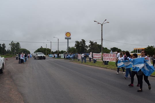 Desde que llegaron al lugar, se fueron ubicando a ambos lados de esta ruta nacional con la presencia de personal policial que alertaba con varios conos de seguridad que se ubicaron a ambos lados ya que el punto de acceso a la ciudad era el punto central de la movilización.