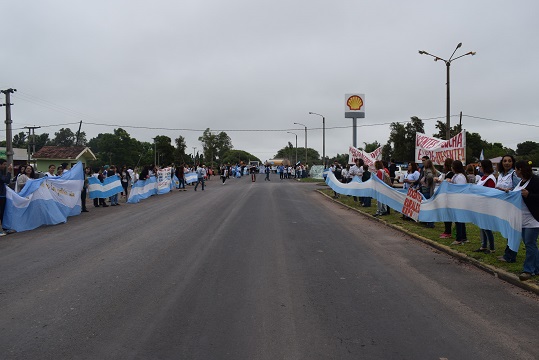 Los conductores de vehículos disminuían y, en muchos casos, paraban para recibir la folletería y calcos que entregaban los manifestantes, y acompañaban con bocinazos. Sólo se cortó en su totalidad el tránsito unos 5 minutos que se ubicaron todos en el centro de la ruta y cantaron el Himno Nacional Argentino, luego volvieron a colocarse al costado, en las banquinas y en los canteros del ingreso a Las Breñas