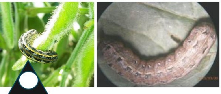 La semana del 8 al 14 de este mes, se incrementaron nuevamente capturas de adultos de la orugas defoliadoras del cultivo de soja como la oruga medidora (R. nu Guené), Anticarsia gemmatalis, y Chrysodeixis includens, con un registro de 38, 6 y 5 ad/quincena, respectivamente, mientras que en el cultivo de soja RR1 sin aplicaciones de insecticidas se continua observando un menor número de orugas medidoras en comparación al de orugas de Anticarsia gemmatalis. Hubo también capturas del complejo Heliotinae, predominando en abundancia la oruga capullera Helicoverpa gelotopoeon Dyar (6 adultos) respecto de H. zea (10 ad) y Heliothis virescens (4 ad).
