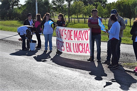 Más de 1.800 docentes, entregaron en ese lugar volantes y adhesivos a los automovilistas que cruzaban dichas rutas, a la vez que acompañaban con sus bocinas la manifestación.