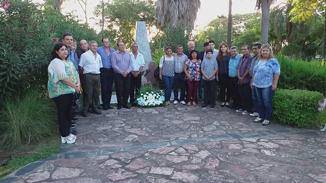 Veteranos de Malvinas con sus familiares y concejales del Municipio local depositaron una ofrenda floral al pie del monolito que recuerda al Soldado Orlando Aylán, fallecido en combate.