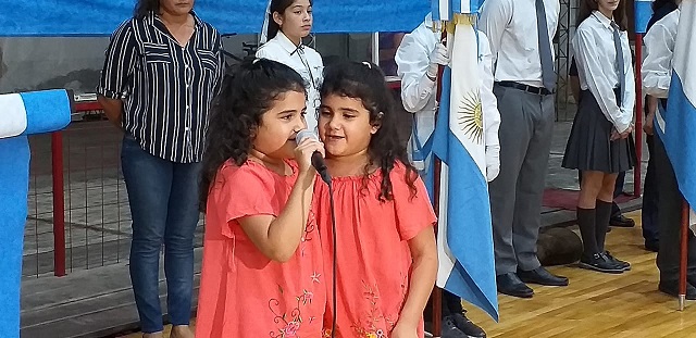 Aymar Malvina Soledad y Marymar Malvina Soledad Schlegel, nietas del ex combatiente Mario Schlegel recitaron una poesía alegórica