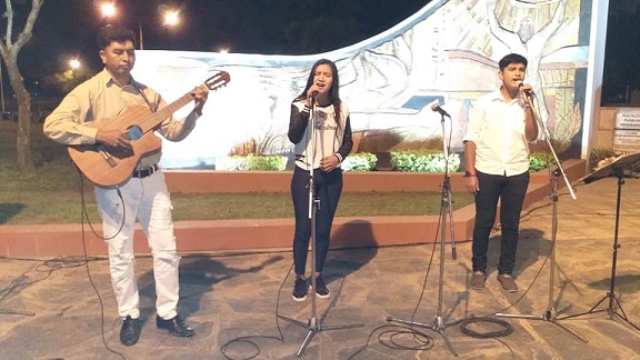 Los hermanos Oriana y Axel Delario junto a su padre Guido, interpretaron temas de la cultura aborigen
