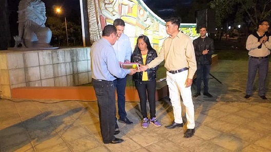 Reconocimiento a Clelia Gómez de Delario por aportes a la alfarería local, recibió su hijo Guido