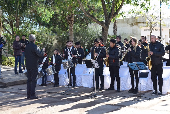 Se ofreció un minuto de silencio por los Caídos en el Conflicto del Atlántico Sur y la ofrenda floral, en nombre de la comunidad, fue depositada al pie del mástil por la escuela de folklore El malambo junto a los integrantes del Concejo Deliberante.