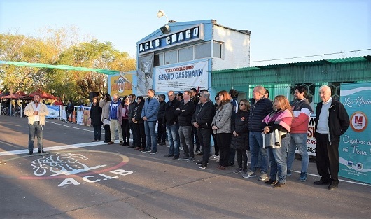 El presidente de la ACLB Ademar Acosta junto a las autoridades locales, provinciales y del ciclismo nacional