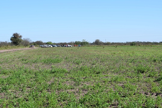 El encuentro se realizó en un lote ubicado sobre Ruta 6 a uno 5 km de Las Breñas, propiedad de Carlos Gympel, en el que estaba implantada alfalfa por el productor Javier Roma y que presenta notables pérdidas de plantas por efectos del anegamiento a raíz de las excesivas lluvias del primer semestre de este año.