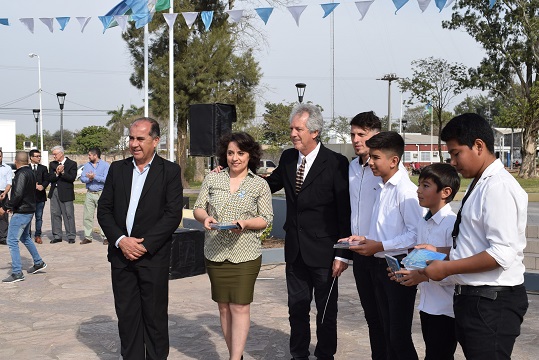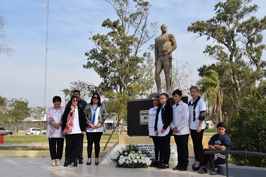 Los representantes de la Escuela Primaria N° 516 “Libertador General José de San Martín” depositaron una ofrenda floral, en representación de toda la comunidad, al pie de la escultura que representa al Gran Capitán.
