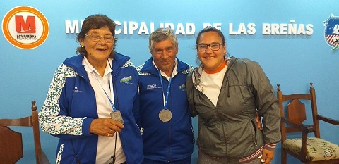 Los adultos mayores Ilda Altamirano y Rubén Coronel participaron en el juego del sapo obteniendo medalla de plata y 22° lugar, en sus respectivas categorías, femenino y masculino.
