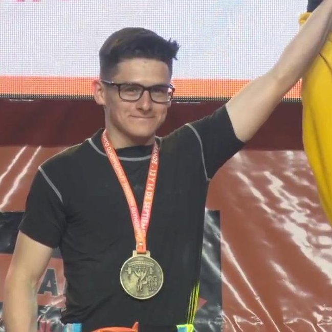 Fernando Mazza con su medalla de oro, campeón nacional Sub20 Levantamiento de Pesas