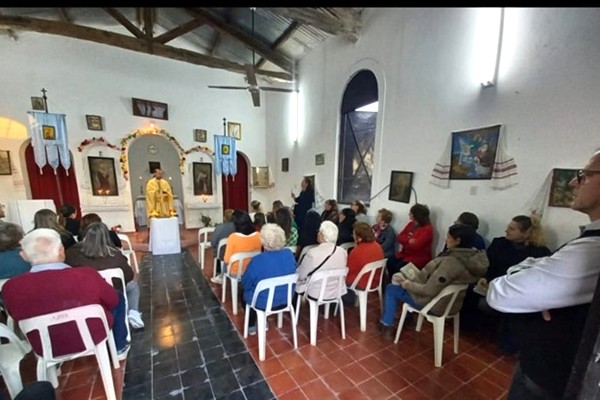 La Iglesia Ortodoxa “Manto Protector de la Virgen María” tuvo un oficio religioso con el sacerdote Taras Gavryshko en el marco de la Fiesta de la Transfiguración y la Dormición que incluyó bendición de flores naturales, frutas, miel y nueces.