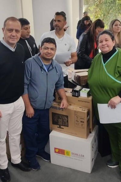 La directora del nosocomio Dra Nancy Gómez y el codirector Dr. Carlos Chamorro asistieron el miércoles último a la Ciudad de Resistencia para la entrega de un Electrocardiógrafo y equipamiento correspondiente a la mencionada red. Estuvieron acompañados por el director de la Región Sanitaria IV Dr. Alexis Iván Zenoff en el acto de lanzamiento que se realizó en el salón General Manuel Obligado de Casa de Gobierno con la presencia del gobernador Leandro Zdero, el subsecretario de Programación y Gestión Estratégica Dr. Rafael Ademar Meneses y la subsecretaria de Articulación Sanitaria Dra. Mariela Mercadini.