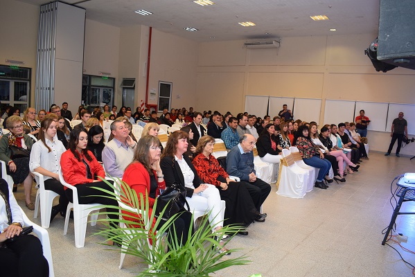 La ceremonia fue en el salón de usos múltiples del Instituto de Educación Superior “Miguel Neme” y, desde un rato antes del inicio previsto para las 20:30 del vienes, ya había egresados y docentes que se fundían en abrazos de reencuentro con recuerdos compartidos.