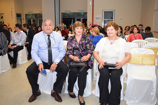 Después fue el turno de los egresados Bodas de Oro, se leyó la nómina de quienes la integraban; de ellos, Pedro Rubén Farías, Zulema Calderón y Norma Amelia Barrera entregaron un obsequio a la directora del colegio Soledad Cardozo y, a su vez, recibieron un presente recordatorio de la institución, nacida como Escuela de Comercio N° 5 en 1958. Dirigió la palaba, en nombre de los egresados 1969, Zulema Calderón.