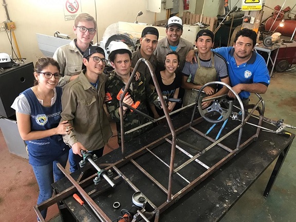 Los alumnos del proyecto Autocar V3 junto al padrino Darío Lopilato que los visitó recientemente