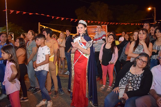 Secundan a María Belén, la 1ª princesa Danisa Beatriz Cáceres, 19, colectividad paraguaya, de Pampa del Indio y 2ª princesa Xiomara Mailén Aguirre Lefort, 22, española, Las Breñas; Miss Cultura, Karen Antonella Peloff, 21, Las Breñas y Miss Traje Típico también fue para la Reina.