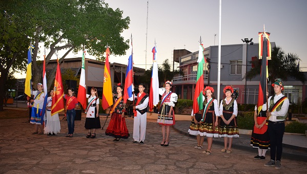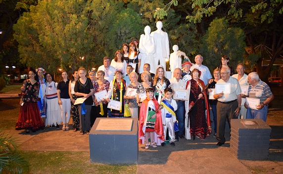 La Asociación Permanente de la Fiesta Provincial del Inmigrante organizó el acto del Día Provincial del Inmigrante en el playón cívico de la plaza Sarmiento, en el que reconoció el desempeño de varios adultos mayores en sus colectividades y se notó la ausencia de la Bandera Argentina entre las que se presentaron al inicio del acto.