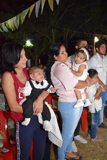 En el transcurso de la celebración el sacerdote impuso el sacramento del bautismo a los niños Tyana Narela Domínguez y Facundo Lorenzo Figueroa Castillo que estuvieron con sus padres y padrinos para recibir la unción con el óleo de los catecúmenos; triple inmersión en el agua bautismal, derramando en este caso las tres veces sobre la frente de cada uno; unción con el santo crisma y el encendido del cirio que llevó cada uno representando la luz del mundo.