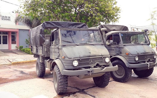 En horas de la tarde de este sábado llegaron dos Unimog del Ejército Argentino, uno de los cuales fue a cumplir tareas en Charata; el otro quedó y en la tarde comenzó con las actividades de ayuda a los damnificados y mañana se dirigirá hasta los parajes rurales para acercar la ayuda necesaria.