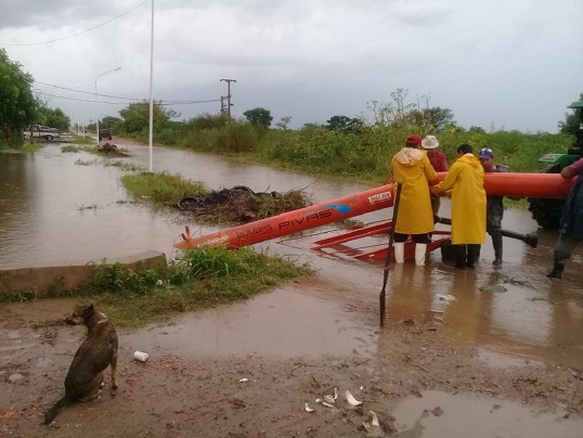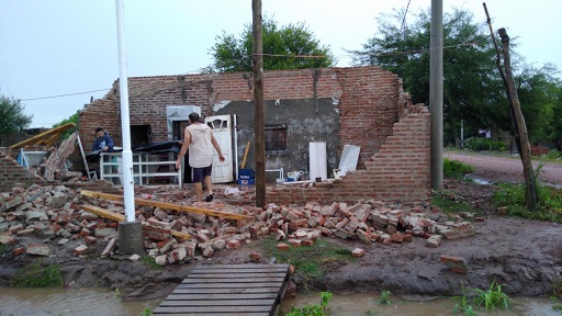 La acción del evento produjo voladuras de techos, derrumbe de viviendas, tanto en el caso urbano como en la zona rural, sobre todo en los parajes Santa Elena, Pampa Zanatta, Pampa Mitre, Pampa Suárez, por lo que hay un permanente relevamiento de las familias de esos lugares para tratar de acercar ayuda o evacuarlos en los casos que se puede llegar porque hay una cantidad importante de cortes de caminos por acción del agua.
