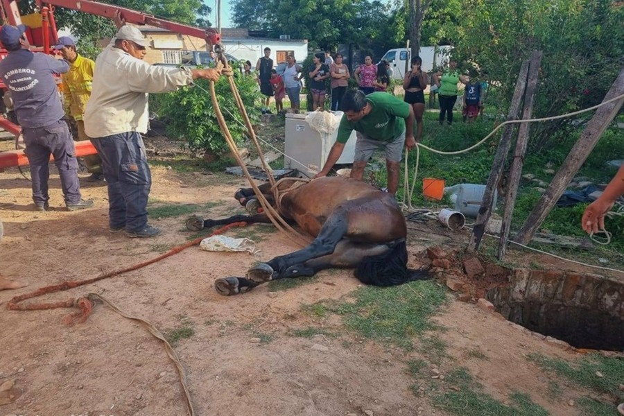 Los bomberos voluntarios de la ciudad debieron actuar nuevamente en el rescate de un animal que había caído en un pozo al ras del suelo y sin tapa, otro ejemplo de peligro e irresponsabilidad según calificación de los servidores públicos.