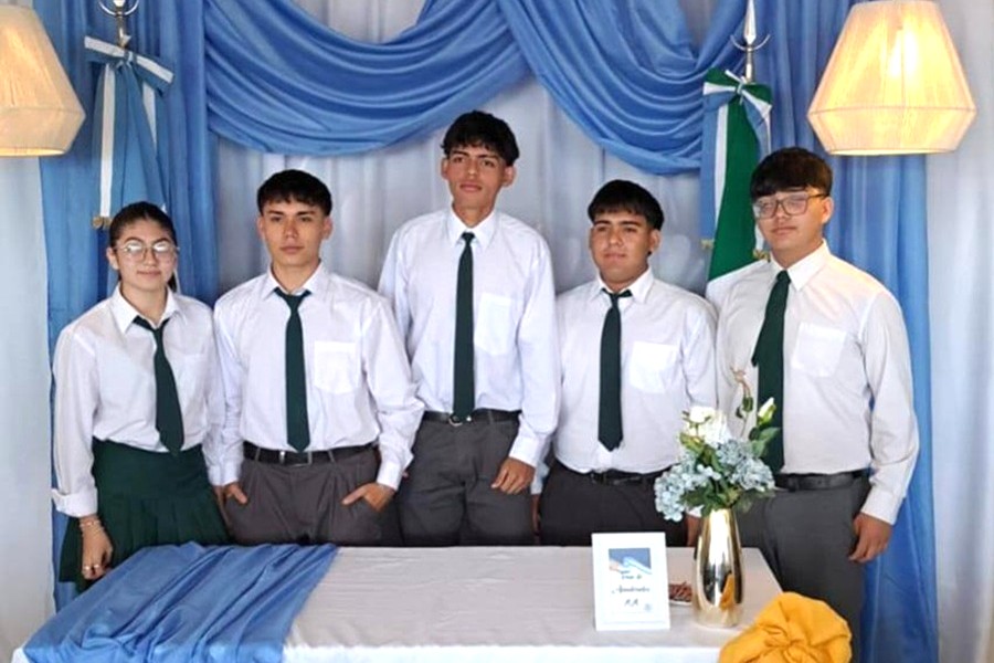 Los alumnos de 4° año que integran las ternas de abanderados de la Escuela de Educación Secundaria N° 26 “ap. De Frag. Pedro Edgardo Giachino” participaron de la reunión con directivos y tutores el miércoles 3 en el local escolar.