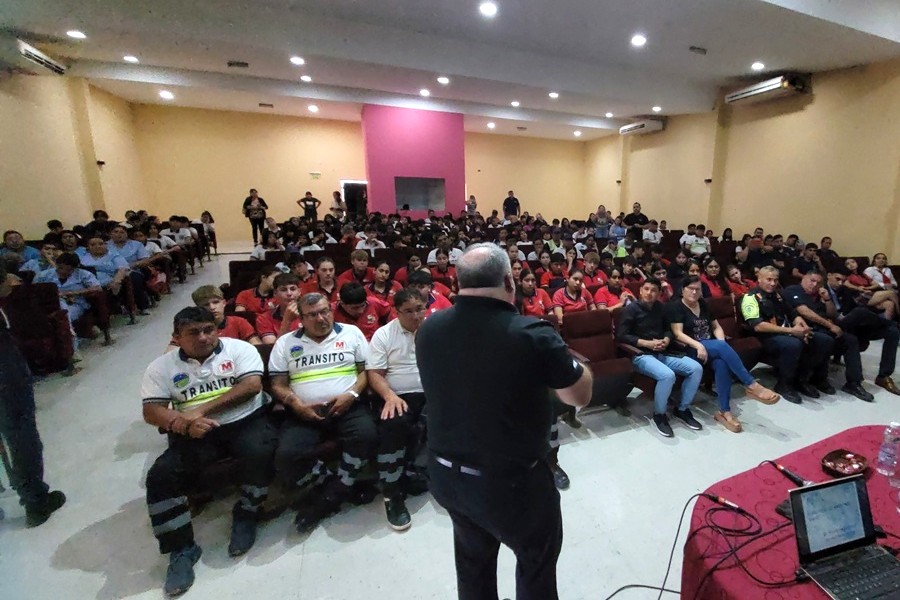 El Gobierno Municipal organizó y coordinó una charla sobre Concientización en Siniestros Viales en la Casa de las Culturas a la que acudieron referentes de diversas reparticiones y alumnos de colegios de la ciudad.