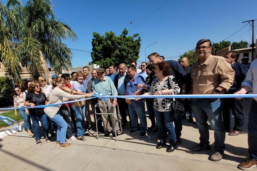 El gobernador Leandro Zdero junto al intendente Omar Machuca y al administrador de Vialidad Provincial Omar Canela, acompañados por funcionarios provinciales y municipales, referentes de entidades locales y vecinos inauguraron pavimento urbano.