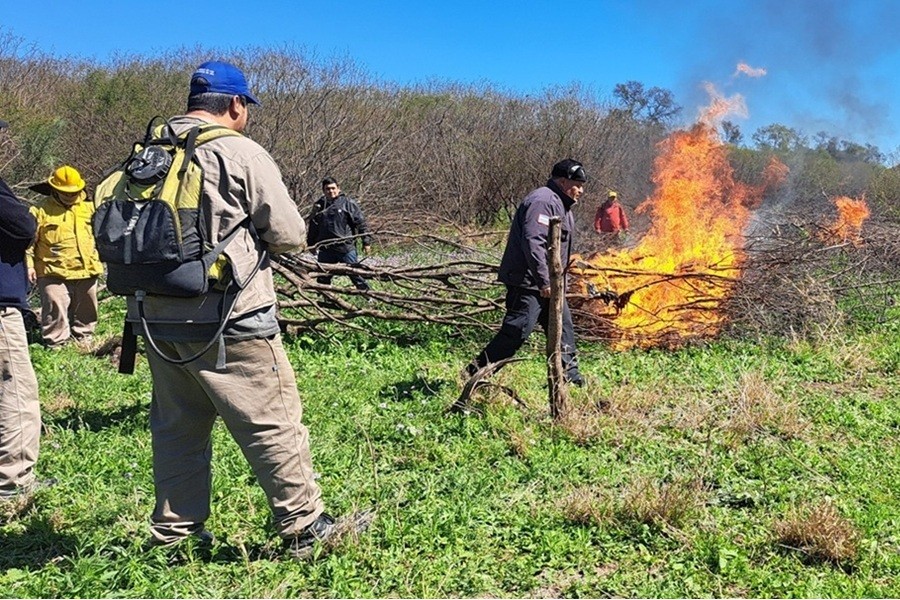 El personal de la Estación Experimental Agropecuaria “Ing. Agr. Emilio Druzianich” de INTA Las Breñas participó de una capacitación sobre Manejo de Incendios Forestales que brindó un equipo de Bomberos Voluntarios.