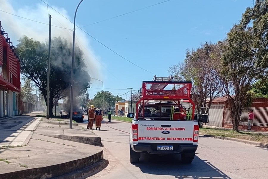 Un automóvil se incendió en la vía pública y requirió la intervención de los integrantes del cuerpo activo de la Asociación Civil Bomberos Voluntarios de esta ciudad.