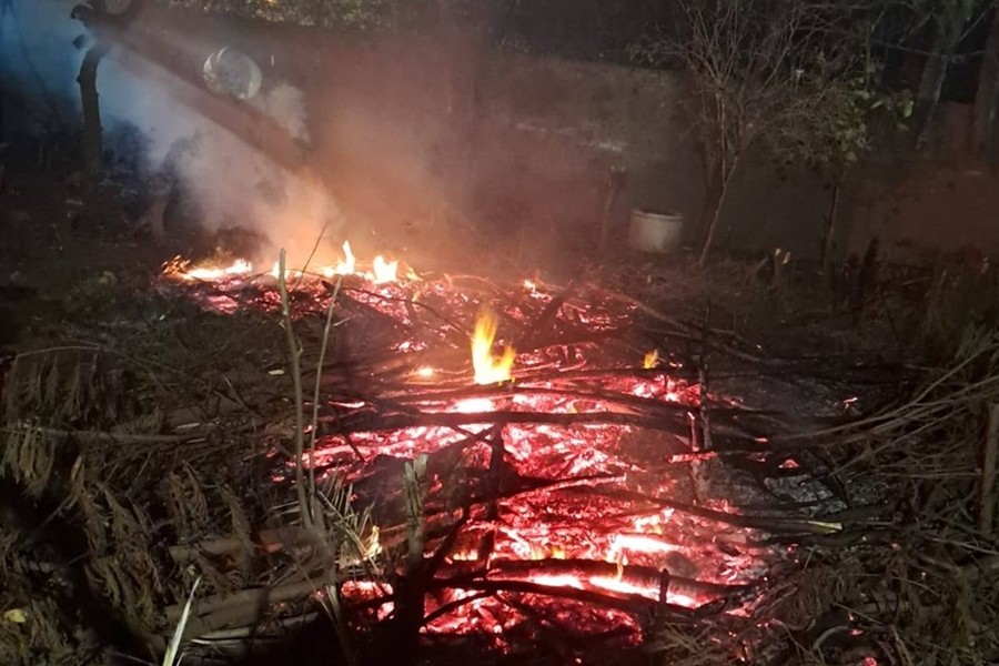 Los integrantes del cuerpo activo de Bomberos Voluntarios debieron actuar para sofocar el fuego en el patio de una casa que habría sido iniciado por el dueño, según informó la entidad bomberil.