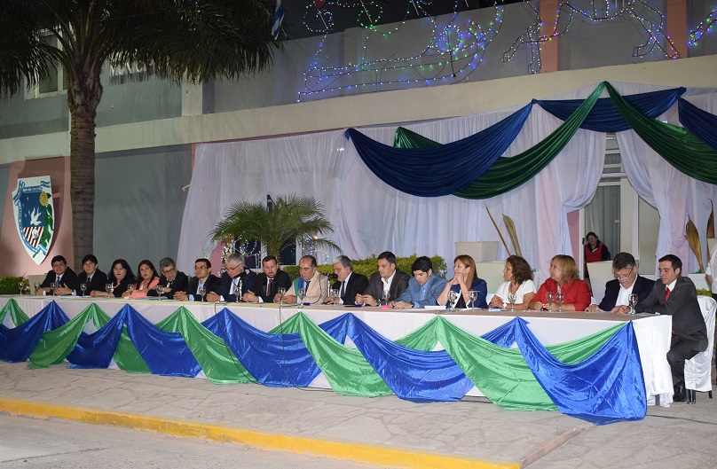 El intendente Víctor Omar Machuca asumió en la noche del martes el cargo que ocupa por quinto período consecutivo y Gustavo Daniel González, concejal electo por primera vez, preside el Concejo Deliberante, después del acto realizado en el playón cívico frente al edificio municipal con un buen marco de público y la presencia de representantes de instituciones comunitarias.