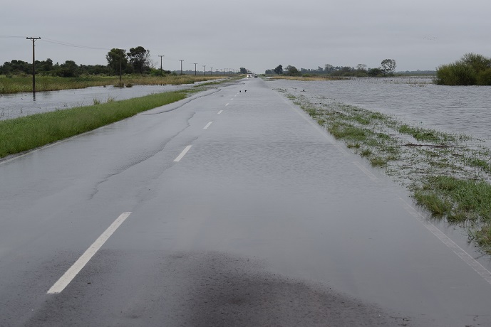 La ruta provincial N° 6 que une las localidades de Las Breñas y San Bernardo, a unos 20 kilómetros de Las Breñas, presenta un sector de 800 metros, aproximadamente, totalmente cubierto de agua que la surca de norte a sur.