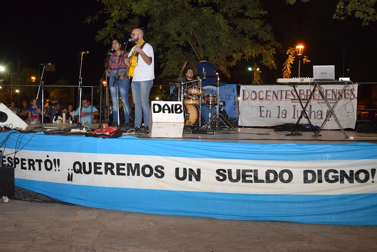 El cierre de la tercera semana de protesta docente que incluyó 5 días de paro sin asistencia a los lugares de trabajo fue con el fogón que se realizó en el playón de la plaza General San Martín y convocó a una multitud estimada en más de tres mil personas.