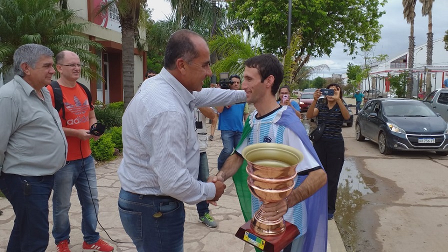 El bochófilo breñense Alfredo Rupere arribó a Las Breñas el lunes en horas de la siesta y fue recibido por familiares y amigos