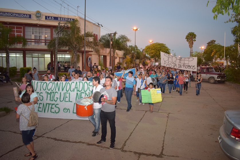 Los docentes que cumplen funciones en Las Breñas y departamento 9 de Julio marcharon el jueves con antorchas por las calles de Las Breñas, dando continuidad al plan de lucha