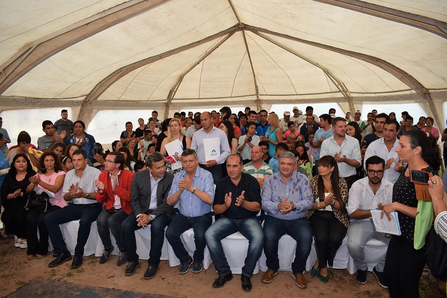 El gobernador de la provincia Oscar Domingo Peppo, participó de la entrega de 25 viviendas en el barrio Jorge Federico Damilano, cerca de la intersección de las calles Diotino García y Juan Ferrer, en el oeste de la ciudad. Hasta allí llegó, bajo la lluvia, acompañado por funcionarios del gobierno provincial, del IPDUV, Secheep y Sameep, más de una hora después de lo programado y lo esperaban el intendente Omar Machuca, el coordinador en NEA del Plan Belgrano Víctor Zimmermann, diputado Livio Gutiérrez, diputada MC Viviana Damilano Grivarello, concejales y funcionarios municipales, adjudicatarios, familiares y vecinos que participaron de la ceremonia.