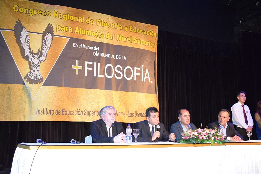 El vicegobernador encabezó la apertura y, antes de dejar oficialmente iniciado el Congreso Regional de Filosofía, entregó el decreto de declaración de interés provincial y, en su mensaje, remarcó el objetivo del gobierno provincial de promover políticas con una mirada federal hacia el interior del Chaco, destacó la importancia de llegar al interior con oportunidades de capacitación y perfeccionamiento pedagógico. Además, marcó la relevancia que las capacitaciones se lleven adelante en el interior provincial, porque “es importante que lleguemos a cada alumno y docente del Chaco con nuevas técnicas de aprendizaje y nuevos conocimientos que luego son multiplicados a través de su trasmisión”, aseguró.