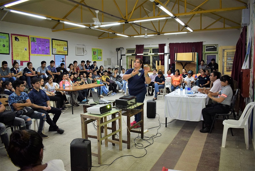 En esta ocasión recibieron información de la 2ª Jefe de Policía Caminera, comisario Paola Martínez, del coordinador de tránsito municipal Marcelo Maldonado y el representante de Padres en la Ruta Las Breñas, Juan Carlos Iturbide; los acompañaba la oficial ayudante Aracelli Ayala, la directora del establecimiento Celia Cuesta y docentes del departamento.