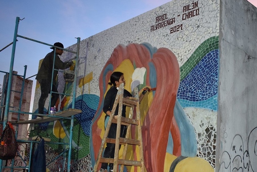 Los jóvenes artistas breñenses Ailén Navarro y Ariel Alvarenga trabajan en la obra “Prosperidad” que, con motivo del Centenario de Las Breñas a cumplirse el próximo 11 de julio, la presentarán en el Paseo de la Juventud ubicado en el sector de playas del ferrocarril en avenida San Martín entre Moreno y Mac Lean.