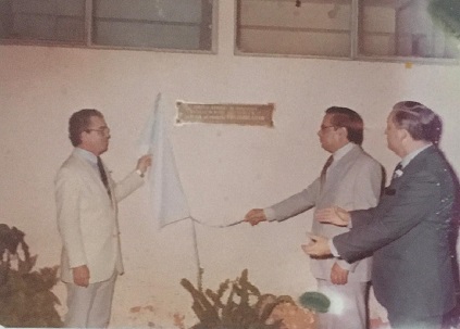 Descubrimiento de placa en acto de imposición de nombre, Prof. Marcos Antonio Altamirano, CPN Fioravante Sequenzia y Sr. Felipe Albarrán.