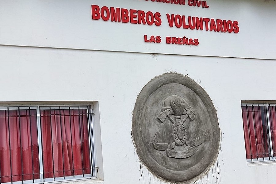 La joven artista breñense Ailén Navarro trabaja en una obra identitaria de bomberos voluntarios en el frente de la sede del cuartel ubicado en Gobernador Tauguinas y Estado de Israel.