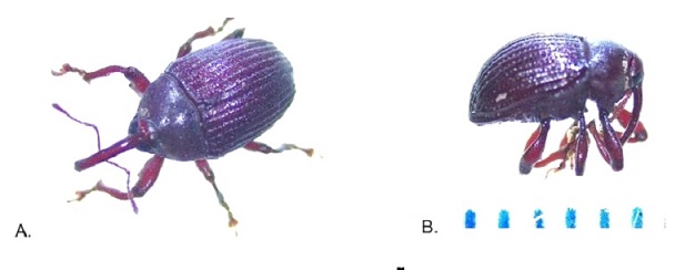 Hacia fines de la campaña 2020/2021 y durante la campaña 20021/2022, se recibieron en el área de entomología de la EEA INTA Las Breñas ejemplares de unos picudos negros y sus estados inmaduros provenientes de la zona de El Caburé, Santiago del Estero. En la primera se encontraron larvas en vainas de soja consumiendo las semillas y en la siguiente se registró a los adultos ocasionando daños en los estados vegetativos del cultivo, en el ápice de las plantas de soja. Por otro lado, también se los observó en el cultivo de algodón el cual se encontraba en floración, pero sin registrarse daños. Los ejemplares colectados fueron enviados e identificados como Rhyssomatus subtilis Fiedler (Coleoptera: Curculionidae) por el Dr. (Ing. Agr.) Lucas Cazado y el Ing. Agr. Casmuz.