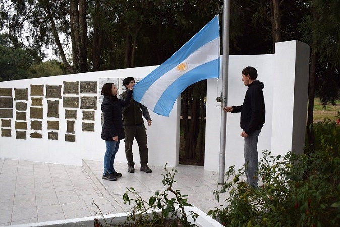 La concentración del personal e invitados y periodistas fue en el sector comprendido entre el mástil y la sede administrativa para presenciar el izamiento de la Bandera Nacional que estuvo a cargo de los ingenieros agrónomos Johana Luzzi y Sergio Colli, y el ingeniero zootecnista Iván Filip; luego, se ofreció un minuto de silencio por todo el personal de la unidad fallecido.