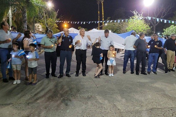 Al aproximarse la medianoche y, con ella, el inicio del nuevo día, se realizó la clásica formación de los Veteranos de Malvinas, sus hijos, familiares, Madrinas de Guerra, autoridades y vecinos junto a la Bandera Nacional para iniciar la marcha alrededor de la plaza portando velas y antorchas, recibiendo el histórico 2 de abril con el canto del Himno Nacional Argentino y de la Marcha de las Malvinas que fue interpretado por el cantante Alejandro Chiquiño Gómez.