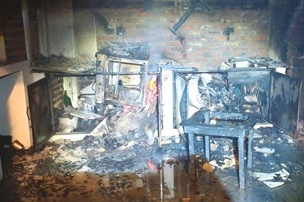 En el lugar se hizo presente personal policial y la ambulancia local con personal que asistió al propietario trasladándolo al hospital debido a la inhalación de humo y a un cuadro de hipertensión.